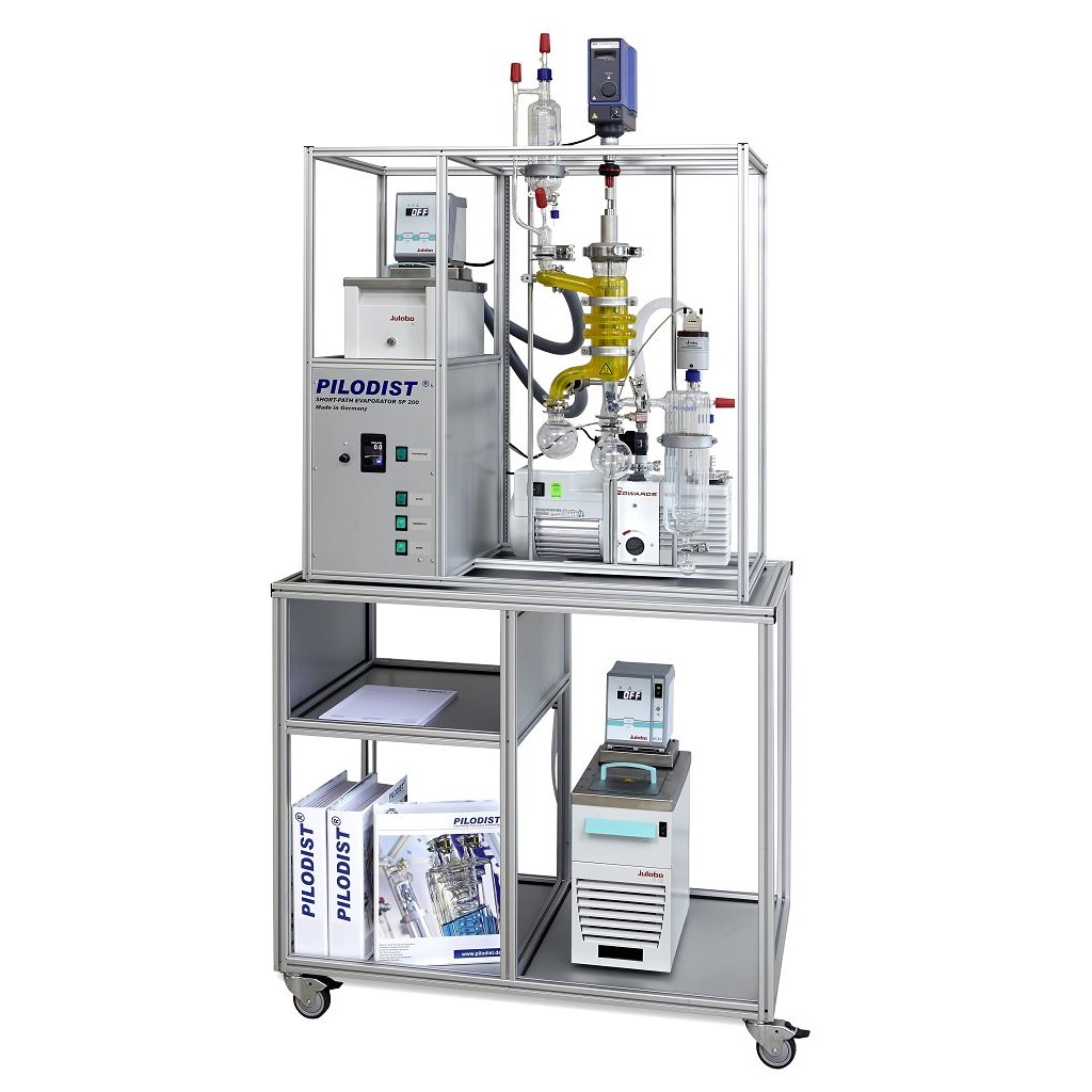 Evaporadores de vidrio de doble pared o híbridos (vidrio y acero inoxidable), con calefacción mediante aceite térmico o mantas eléctricas.